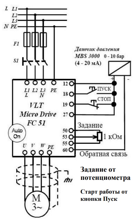 В данной статье дается пошаговая настройка привода VLT Micro Drive FC51 для применения: