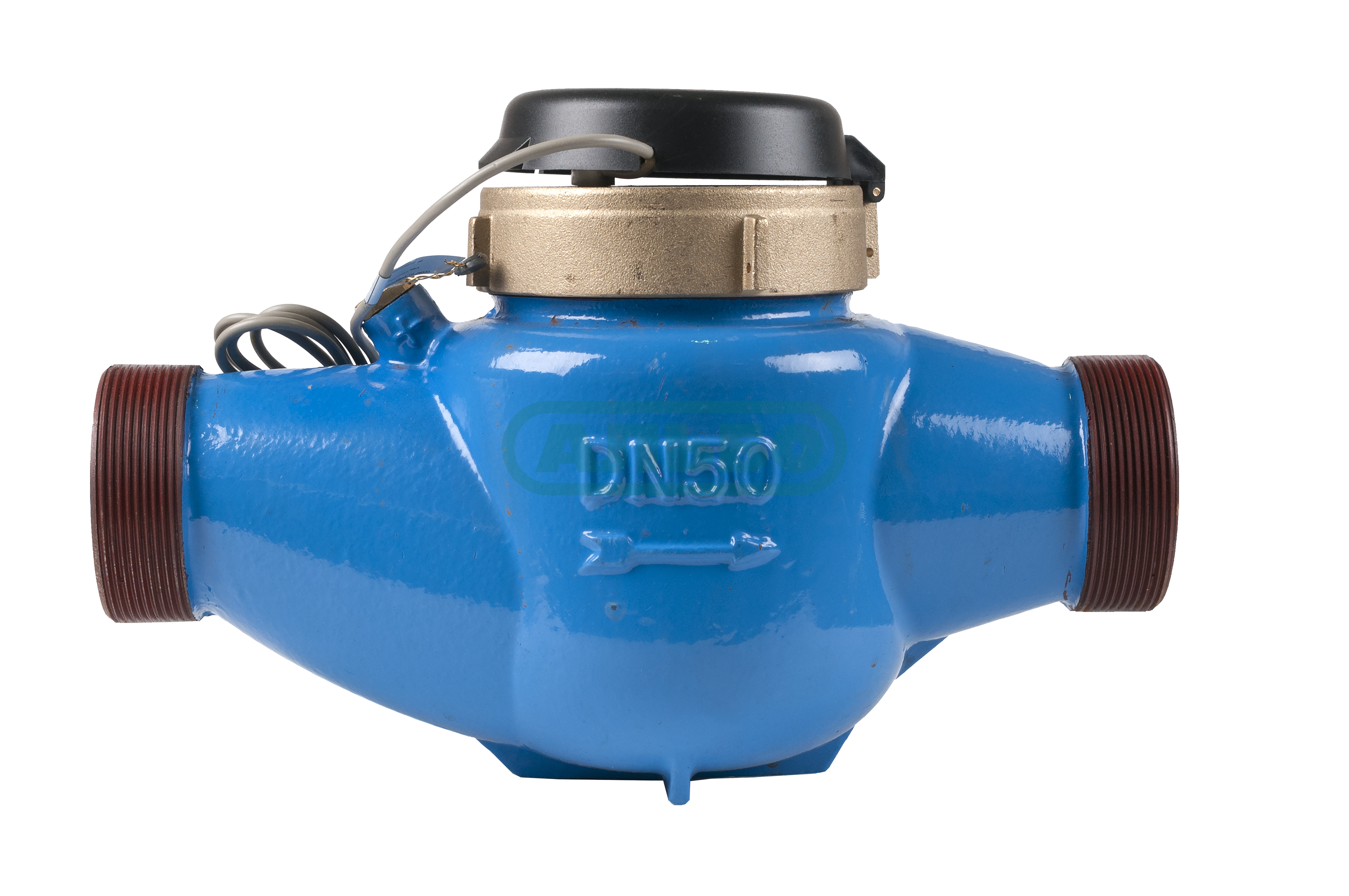 Общедомовой счетчик для воды (только холодная) в исполнении: крыльчатый мокроходный многоструйный ВКМ-50М ДГ «РОСИЧ» с импульсным выходом в комплекте с присоединительными частями под резьбу.