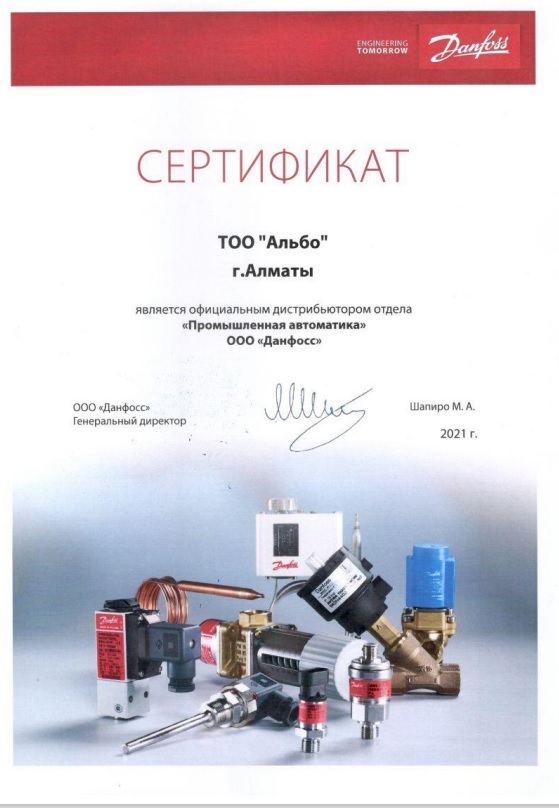 Сертификат Danfoss Industrial Automation (промавтоматика) Альбо 2022