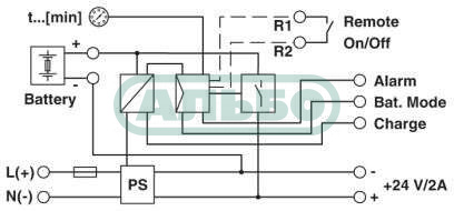 Свинцовый аккумулятор на базе технологии AGM обеспечивает возможность автономной работы в течение 2 часов с ном. нагрузкой при выходном напряжений 24 или 12 В пост. тока.