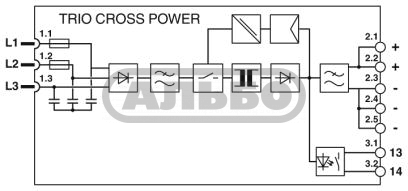 Импульсный источник питания, TRIO POWER, Зажимы Snap-on, Cross Power System – монтаж, вход: 3-фазный, выход: 24 В DC / 5 A