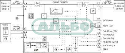 ИБП QUINT с IQ Technology, коммуникационным интерфейсом USB (Modbus/RTU), монтаж на несущую рейку, вход: 24 В DC, выход: 24 В DC / 5 А, зарядный ток: 1,5 А